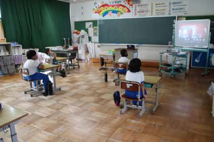 その後、各学級と校長室をオンラインでつないで、足助警察署の方からのお話を聞き、自分の身を守るためのDVDを視聴しました。もしもの時に、どう行動すると身を守れるか、また、もしものことに合わないように、普段から防犯ブザーを身につけること、一人にならないことなどの確認することができました。