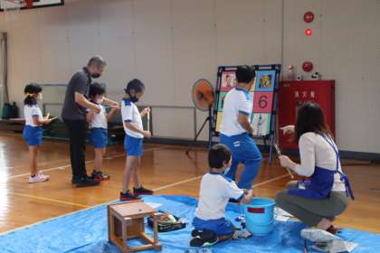 出来上がってからも、水に濡らした新聞の詰め方が難しく、量を調節しながら、何度も挑戦していました。空気鉄砲作りを通して、学習に大切な試行錯誤をすることができました。