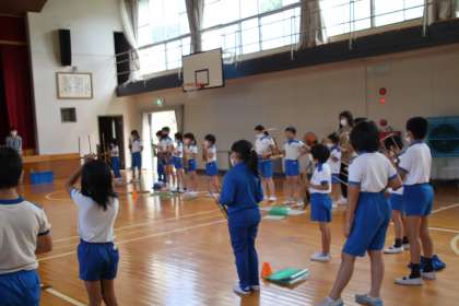 10月14日(木)の5時間目に、体育館で竹楽器クラブを行いました。
