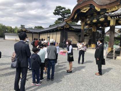 二条城を見学しました 公開日 2021/10/19 更新日 2021/10/19 学校行事 徳川幕府の始まりと終焉の地である二条城を見学しました。鶯張りの廊下を体験したり、大政奉還が行われた大広間を見ました。大きな城で、いろいろな広間をバスガイドさんの説明を聞きながら、回りました。この後、最後の見学地である清水寺に向かいます。