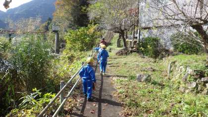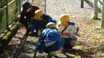 11月2日(火)の2時間目に、1年生が生活科でドングリ拾いに行きました。