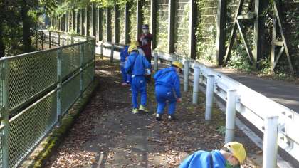秋になり、今まで校庭の大きなドングリを拾ってきました。今度は違う種類のドングリを拾おうと、両国橋の近くに行きました。この場所には、小さなドングリがたくさん落ちていて、子どもたちは夢中になって拾っていました。