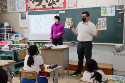 11月11日(木)の2時間目に、3・4年生が外国語活動を行いました。