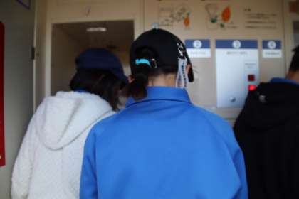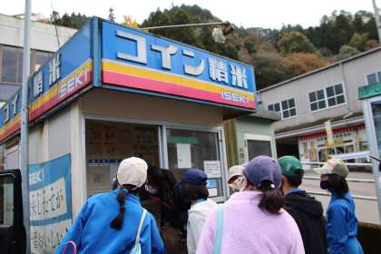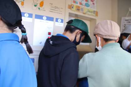 JA旭支店の前にある精米機に、学校の田んぼで育てたお米を持っていき、精米する体験をしました。
