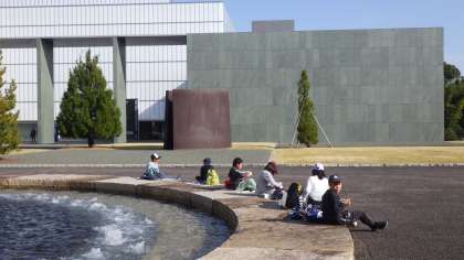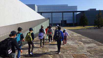 バスで名鉄猿投駅に着くと、一人一人券売機で切符を買って、名鉄豊田駅まで乗車しました。名鉄豊田駅では、すぐそばにあるマクドナルドで飲み物を買ったり、町の様子を見学したりしました。子どもたちはペデストリアンデッキから信号をのぞいてその大きさに驚いていました。そして、町の道案内の看板を見つけながら歩いて豊田市美術館へ行きました。美術館では、ホー・ツーチェン作の「百鬼夜行」の映像作品を中心にたくさんの鑑賞をじっくりと行うことができました。お昼は、美術館の噴水のところで、お弁当を食べました。