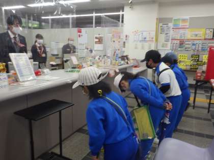 11月25日、2年生の町探検の後半は、旭郵便局と彦平商店です。