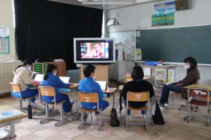今年は、コロナによる感染症予防対策のため、リモートによる芸術鑑賞会となりました。今回は、劇団四季の「はじまりの樹の神話〜こそあどの森の物語〜」を観ました。タブレットで歌詞がみられるようになっていて、一人一人タブレットを開いてみるなどして、楽しく鑑賞することができました。
