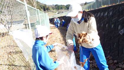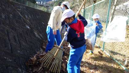 12月13日(月)の2時間目の休み時間に、全校で落ち葉拾いをしました。