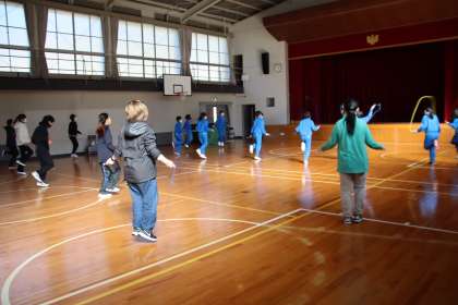 2時間目は、1・2年生が前跳びやあや跳びの仕方を教えていただきました。縄跳びの持ち方やなわの回し方のコツを学びました。