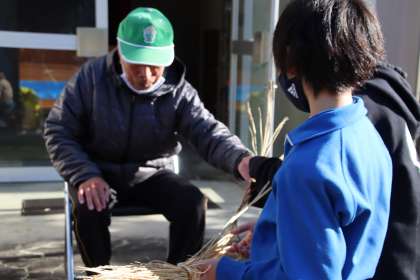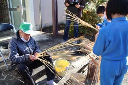 12月20日(月)の2時間目から3時間目に、地域の方にお越しいただき、5・6年生が縄綯えの仕方を教えていただきました。