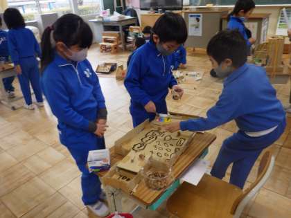 12月21日(火)に、1年生が生活科「おいでよ どんぐりのおもちゃやさん」の学習で、2年生を招待しました。