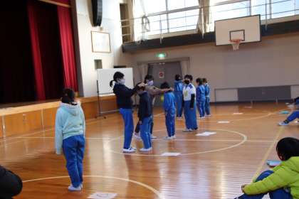 12月23日(木)の5時間目に、全校が体育館に集まって、冬季休業前の全校集会を行いました。