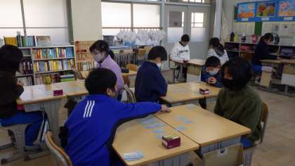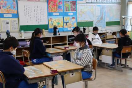 冬休み前から、百人一首に取り組んできました。静寂な空気の中、子どもたちは、真剣な面持ちで取り組んでいました。読み手が読み始めると、「はい!」という声とともに、バンという音が響き渡ります。なかには、上の句の最初の一字だけを聞いて、札を取ることができた子も。先生に教えたいただいた札を取るこつをしっかりと体得していたことがよくわかりました。