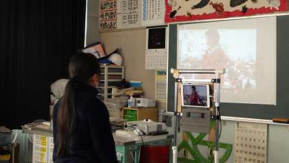 新型コロナウイルスまん延防止のため、今年もリモートでの交流となってしまいましたが、子どもたちは日頃の学習を生かしてタブレットを使い、小渡小学校の良さを伝えることができました。