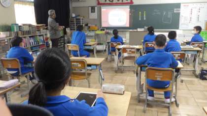 4月26日(火)の朝の活動の時間に、SDGsへのアプローチ2として、SDGsに関する動画を視聴しました。