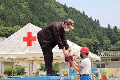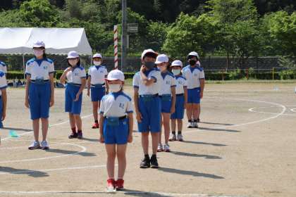 本番の時間に合わせて、開会式の練習から行いました。今までの練習の成果を発揮して、頑張って演技や競技を行いました。また、3年生から6年生は、器具係・招集係・放送係・児童係・得点係という仕事も、リハーサルではじめて本番通りに行いました。手順を確認しながら、行うことができました。運動会当日が楽しみです。