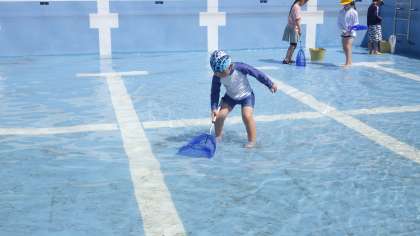 5月30日(月)に、1・2年生がプールで生き物探しをしました。