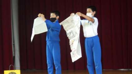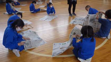 全校で、楽しく新聞ちぎりに挑戦しながら、新聞紙の性質を学ぶことができました。