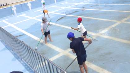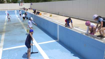 6月1日(水)は、3年生から6年生がプールの掃除をしました。