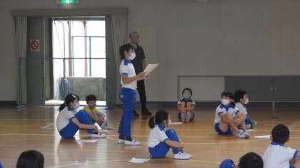 6月21日(火)の朝の活動の時間に、体育館で全校で「心に残る自己紹介」を行いました。