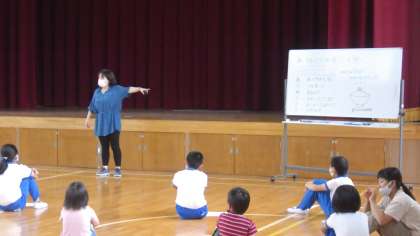 今回は、NHK for Schoolの「お伝と伝じろう」より、話を聞くときのコツである「あ、うめライス」について確認しました。(「あ:あいづちをうって」「う:うなずいて」「め:目をみて」「ラ:ラスト(さいご)まで」「イ:いっしょうけんめいに」「ス:スマイルで」)その後、ファミリー班ごとに1人ずつ自己紹介に挑戦しました。