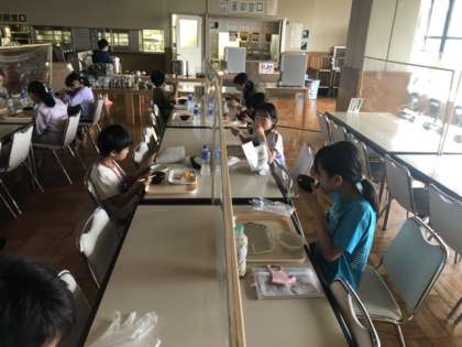 林間学校では、現在朝食の時間です。