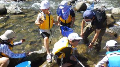 7月6日(水)の1・2時間目に、豊田市環境政策課の方、矢作川研究所の方に講師としてお越しいただき、3・4年生が矢作川の水生生物調査を行いました。