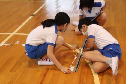児童会の子たちが今回企画したのは、「紙ちぎり大会」でした。時間内にA5の紙をつなげてちぎり、どれだけ長くできるかを競争しました。子どもたちは、6月の初めに、新聞紙をちぎることを体験していたので、それを思い出しながら、紙が途中でちぎれ落ちないように一生懸命に取り組んでいました。最後に、学年でどの子が一番長かったかを発表して、全員で拍手しました。