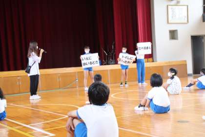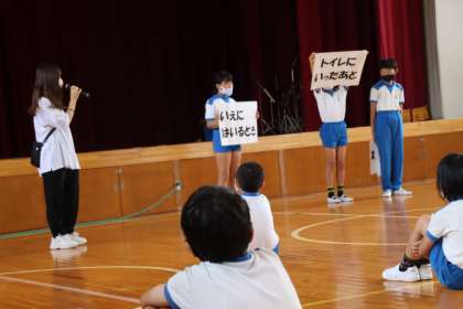 養護教諭の先生は、夏休みでも元気に過ごせるように、コロナにならないための手洗いのタイミングについて、お話されました。
