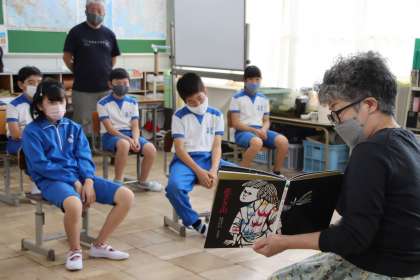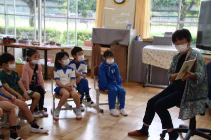 10月4日(火)の朝の活動の時間に、読み聞かせボランティアの方にお越しいただき、全校に読み聞かせをしていただきました。