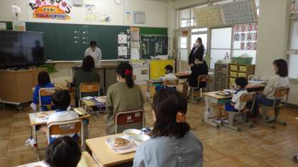 10月12日(水)に、1年生はおうちの方にお越しいただき、給食試食会を行いました。