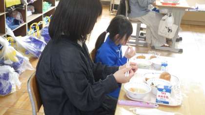 その後、いつもと違う雰囲気の中、おうちの方と一緒に楽しくマナーを守って給食を食べることができました。