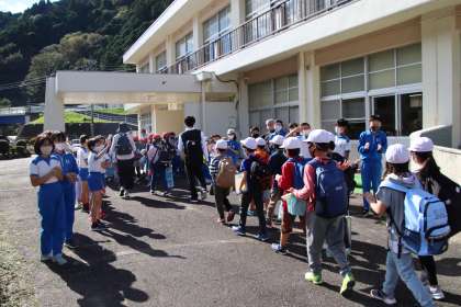 平和小学校の子たちが帰るときは、全校でお見送りしました。