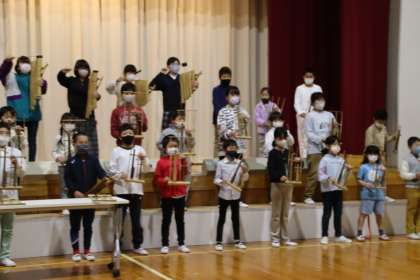 第4回目は、全校で竹楽器の演奏「人間っていいな」を行いました。6月から全校で練習してきたものです。リズムよく演奏することができました。
