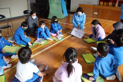 読み聞かせの後は、低学年、中学年、高学年に分かれて、紙芝居のお話の中で、どうするのが優しさなのかを話し合いました。子どもたちは、しっかり考えて、自分の意見を発表することができました。
