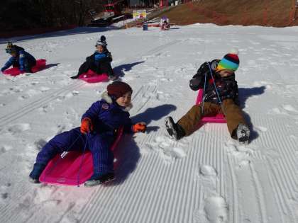 1・2年生そり遊び 公開日 2023/02/07 更新日 2023/02/07 各学年から 1月31日(火)に、1・2年生が旭高原元気村にそりをするために出かけました。 元気村の方に、注意事項を聞いたり、上手なそりの滑り方を教えていただいたりした後、子どもたちは、友達同士でそりを重ねたり、スピードを競ったりして楽しく過ごすことができました。