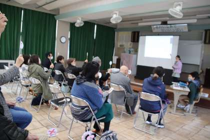 2年生は、生活科で町探検をして発見したことをクイズにしました。町探検でお世話になった地域の方にもお越しいただき、地域や保護者の方にクイズに答えていただきました。