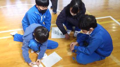 今回は朝の活動を利用して、12枚のシルエットをクリアするスピードを、おどっ子班で競うゲーム形式で行いました。一番速い班は3分50秒でした。今後も楽しく学べる機会を設けていきたいと思います。