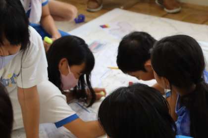 7月13日(木)、5・6年生が総合的な学習の時間に防災マップ作りをしました。
