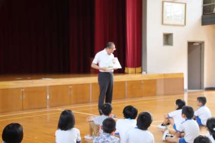 9月4日の朝の活動は、全校で、かさいまり作の「くれんよんがおれたとき」の読み聞かせを行いました。この絵本は、新品のクレヨンをめぐって、友達との関係が気まずくなってしまった「もやもや感」がうまくあらわされており、くれよんが折れた時に主人公やその友達のショックな心情が表れています。子どもたちは、くれよんがおれた場面での主人公や友達の心情を言葉で表し、どのようにしたらよかったかを話し合いました。