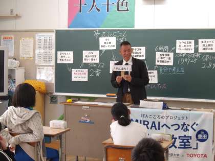 10月13日(金)、元オリンピック選手の青戸慎司さんにご来校いただき、日本サッカー協会主催の「夢の教室」が、5・6年生を対象に実施されました。