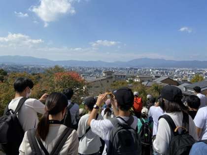 六年生は、二条城見学後、本日最後の目的地、清水寺に来ました。