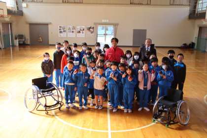 その後、子どもたちは競技用車いすに乗る体験なども行い、最後には佐藤選手が獲得した銅メダルに持たせていただきました。とても貴重な体験をすることができました。