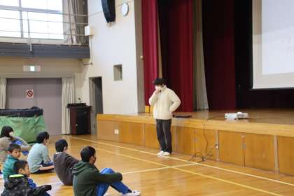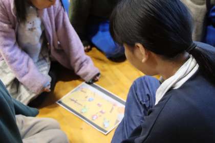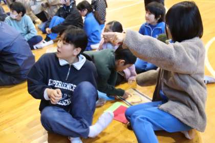 ファミリー班で分かれて、ピタゴラじゃんけんの動画を見ながら、グー、チョキ、パーの何が出るかを予測することを行いました。これは、プログラミング的思考をパソコンなどを使わず養う、アンプラグドと呼ばれるものです。