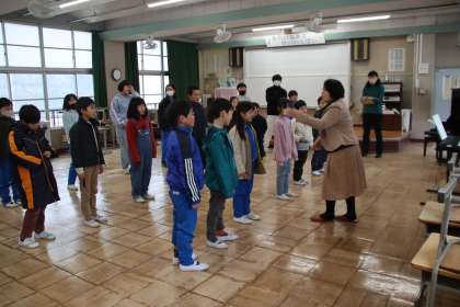 1月24日(水)、毎年お世話になっている音楽講師の米谷先生にお越しいただき、合唱の指導をしていただきました。卒業式に向けて、合唱で卒業生を送るため、1〜5年生と6年生に分かれて、指導をしていただきました。発声や言葉の言い方などを指導していただき、授業後には、素敵な歌声が聞こえるようになりました。米谷先生の合唱指導は2月にも計画されています。