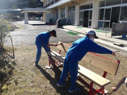 卒業前の愛校活動 公開日 2024/03/13 更新日 2024/03/13 各学年から 2月16日(木)、6年生が愛校活動を行いました。毎年本校の6年生は、卒業前に、自分が通った学校に何かで貢献しようと計画し、実施しています。今年度は、学校の児童玄関前にあるベンチが色あせてきていたのに気づき、ベンチの塗り替えを行いました。カラフルな色に塗り替えられたベンチは、とてもきれいになりました。6年生の皆さん、ありがとう。