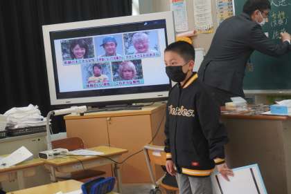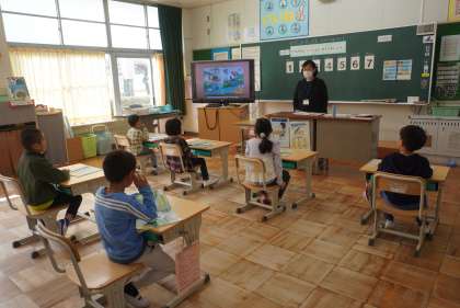 1・2年生は音楽「うたっておどってなかよくしよう」、3・4年生は道徳「ネットと私たちの生活」、5・6年生は道徳「誰を先に乗せる?」を行いました。