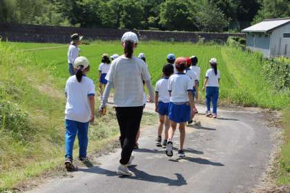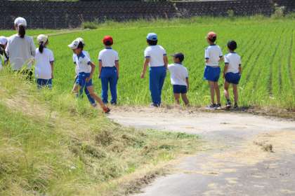 そんな地に住む子どもたちにそのことをぜひ知らせたいということで、この日、田んぼの観察を行いました。子どもたちは興味津々で、トンボの観察を行い、産卵の様子も見られました。よい学習や経験ができました。