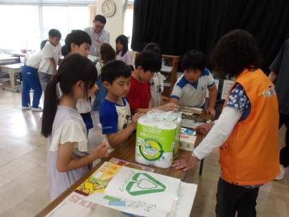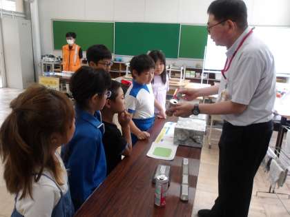 3・4年生は、6月20日(木)に豊田市環境学習施設エコットの方にお越しいただき、出前授業を行っていただきました。社会科で清掃工場とごみの行方について学習をしますが、今回はその一環として、ごみの行方について、渡刈クリーンセンターで処理されたごみの実物を見せていただきながら、ごみの分別について教えていただきました。子どもたちは、紙やペットボトルや缶などがどのような姿になるのか、三人の講師の方の話を興味深そうに聞いていました。