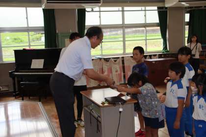 最初に児童会主催の「ほめほめデー」の表彰が行われ、ほねられ王とほめ王が低中高学年別に紹介され、表彰を受けました。